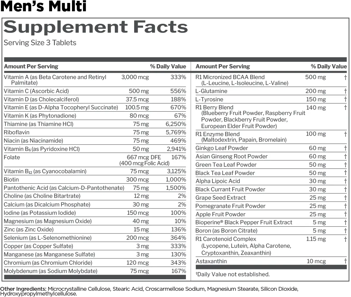 We created Men’s Multi Active Lifestyle to support the needs of highly active men. With over 50 ingredients, 24 vitamins and minerals, and a host of supporting compounds, this daily goes way beyond your typical grocery store multi.^